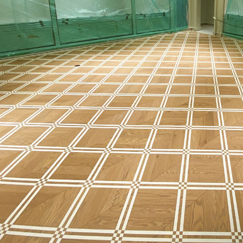 床一面にステンシルシートを貼り